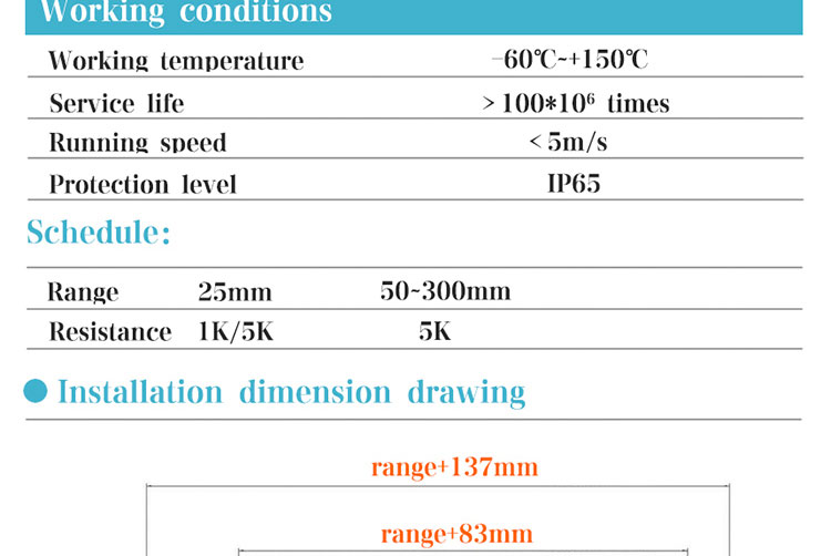 Brief introduction:First of all, thank you for your trust and support! According to the recent feedback information, users often have the following problems in the installation and use of DHL waterproof pull rod linear displacement sensor, which affect the performance and service life of the sensor. 1. DHL waterproof displacement sensor has good dust and water-proof performance. It can work normally in humid, dust or underwater environment for a long time. However, the terminals of sensor shield wire should be far away from water and oil environment. According to the analysis of displacement sensor repaired by customers back to th...... [MORE]